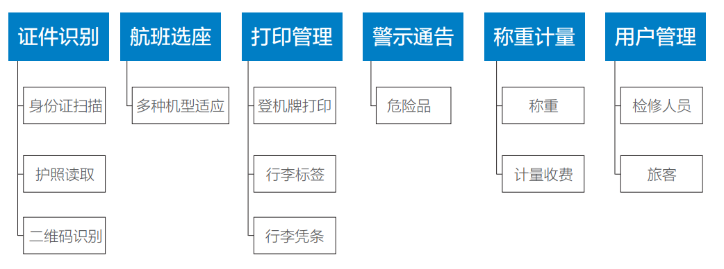 該系統(tǒng)具有“一站式”和“兩站式”服務(wù)模式,可以在同一設(shè)備上實(shí)現(xiàn)辦理值機(jī)手續(xù)和行李自助托運(yùn)功能,也可以在已辦理值機(jī)手續(xù)后再行辦理行李自助托運(yùn)程序;同時亦可實(shí)現(xiàn)航空旅客行李重量、尺寸及行李身份的自動檢測功能,并與航空旅客信息系統(tǒng)、行李傳輸系統(tǒng)建立安全有效的接口功能。